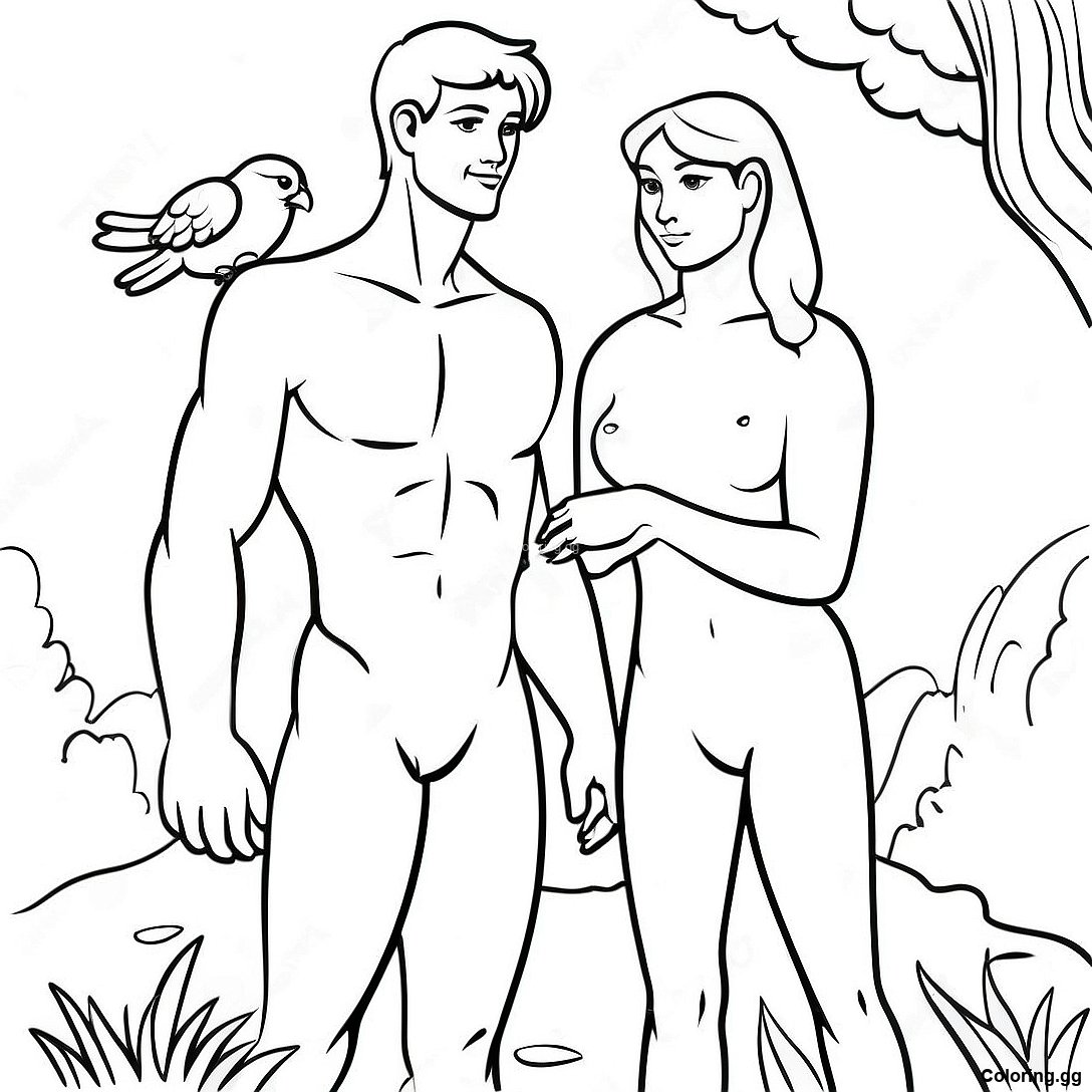 Hlaða niður prentvænu PDF af Adam Og Eva Með Dýrum Lita Bók