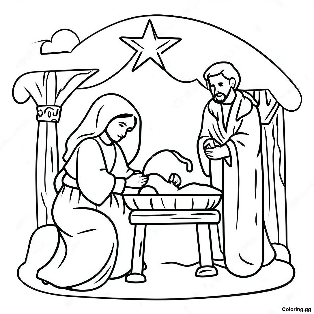 Hlaða niður prentvænu PDF af Advent Fæðingarsena Litabók