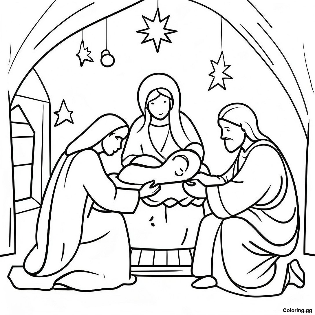 Hlaða niður prentvænu PDF af Advent Fæðingarsena Litabók