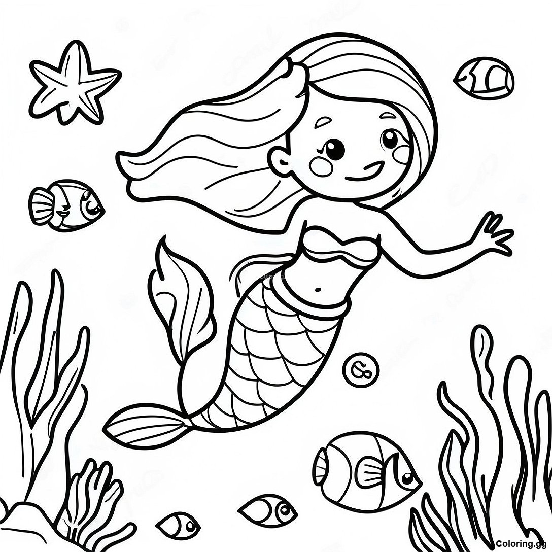 Ævintýraleg Hafmeyja Að Kanna Kóralrif Litabók