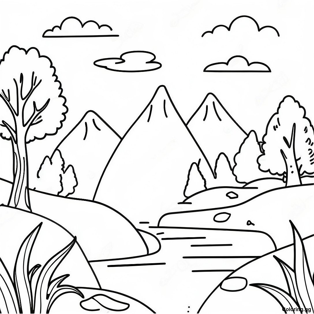 Hlaða niður prentvænu PDF af Auðveld Landslags Teiknisíða