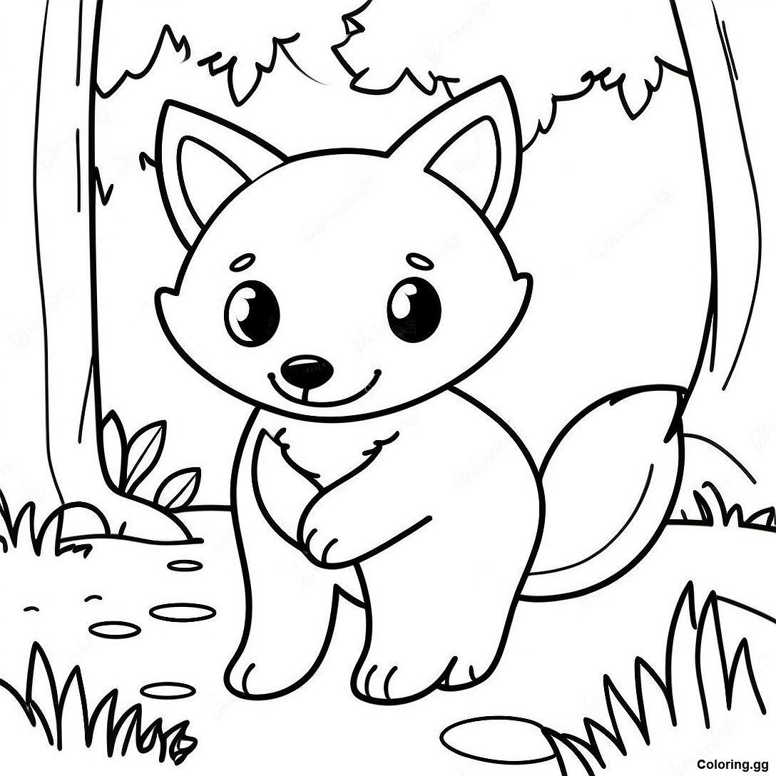 Hlaða niður prentvænu PDF af Chibi Refur Í Skógi Litabók
