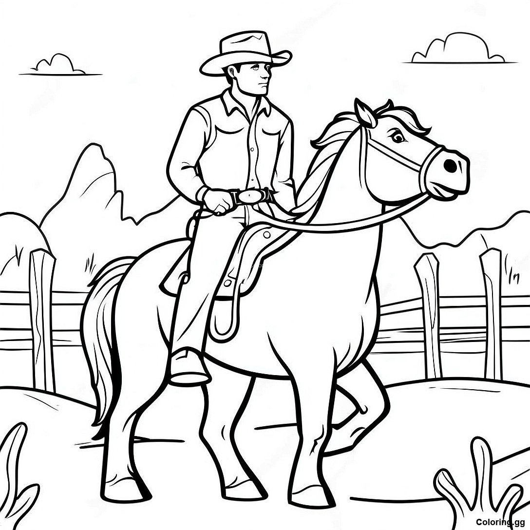 Hlaða niður prentvænu PDF af Cowboy Á Hesti Litabók
