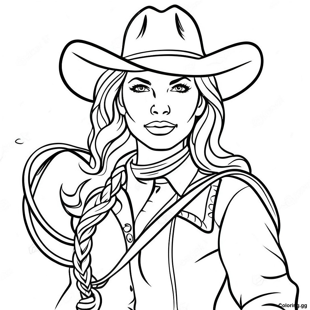 Hlaða niður prentvænu PDF af Cowgirl Með Lasso Litabók