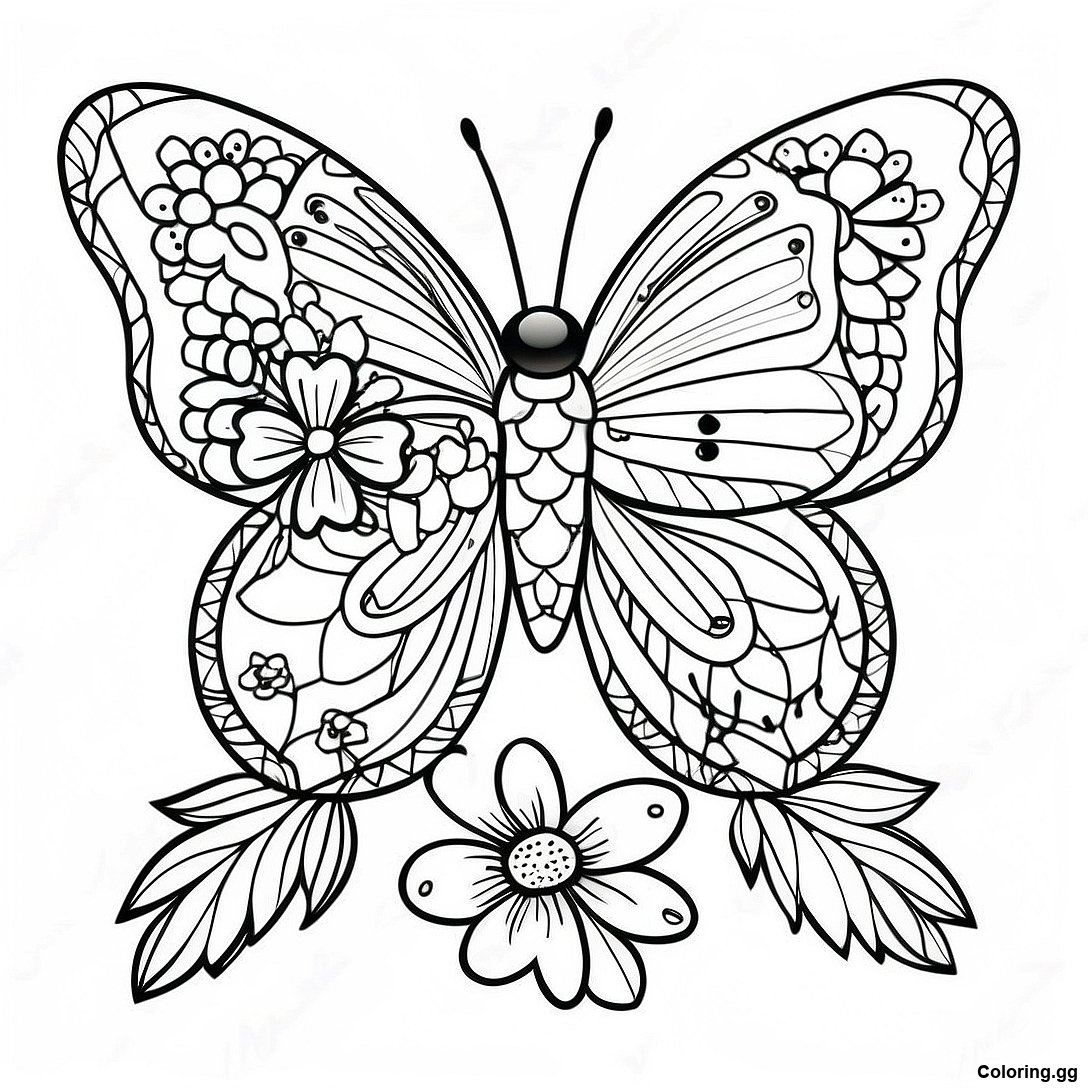 Hlaða niður prentvænu PDF af Fagur Draumafangari Fiðrildi Með Blómum Litabók