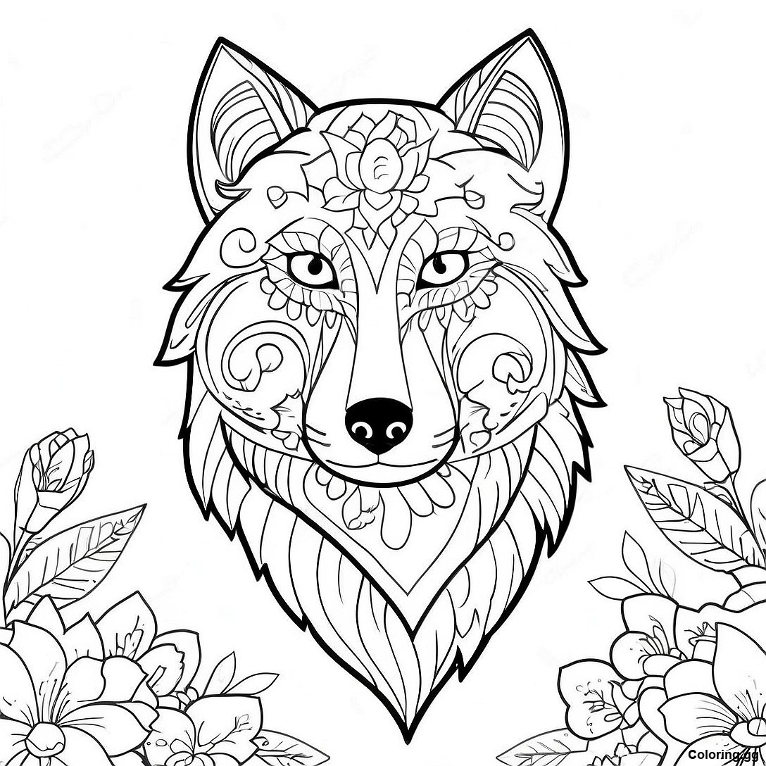 Hlaða niður prentvænu PDF af Fagur Úlfur Með Blómum Coloring Page