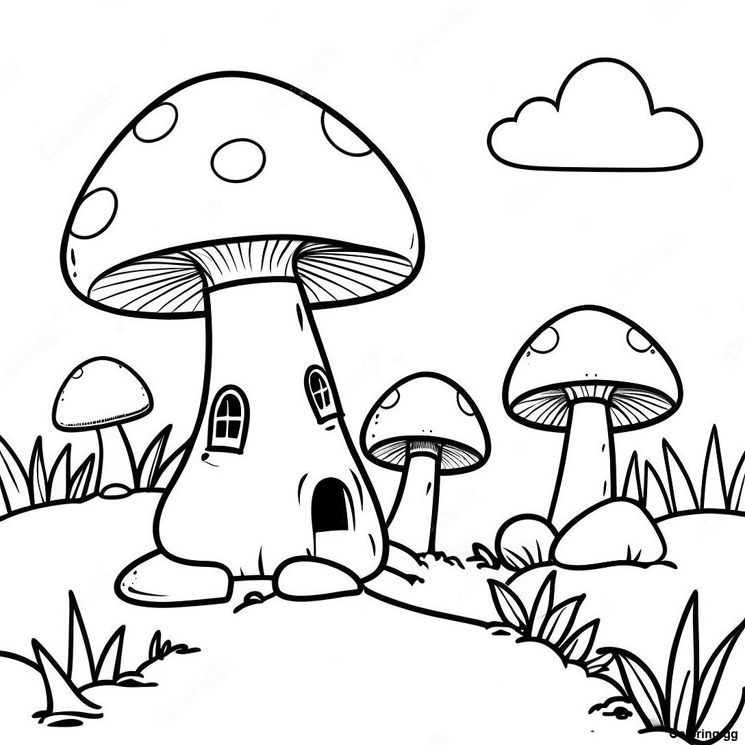 Hlaða niður prentvænu PDF af Fantasíusveppabyggð Litabók