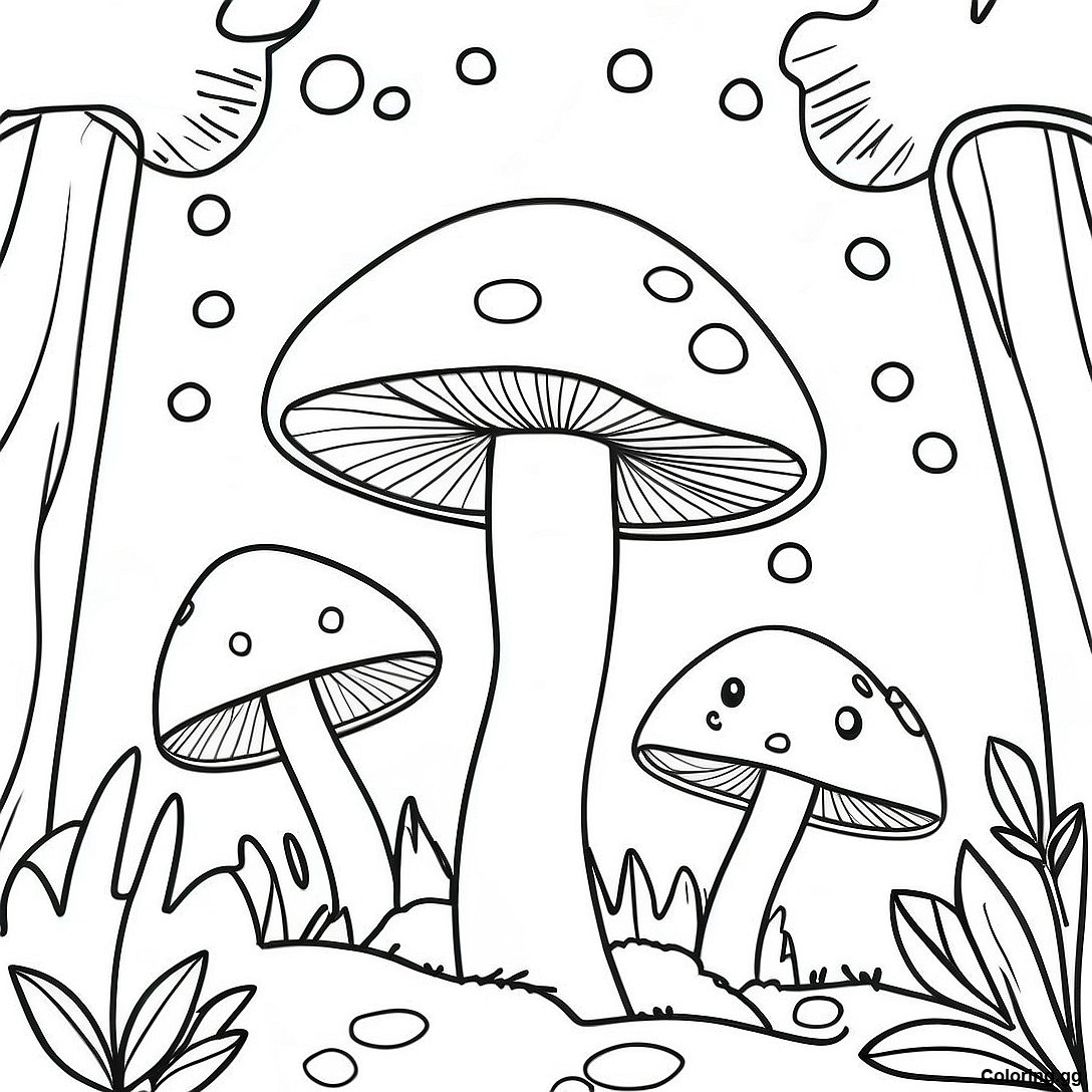 Hlaða niður prentvænu PDF af Fyndinn Sveppaskógur Litabók