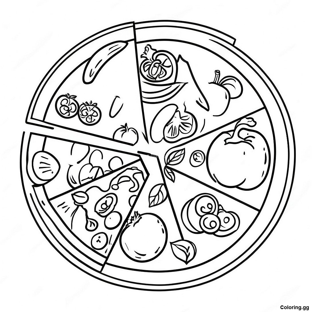 Hlaða niður prentvænu PDF af Grænmetispizza Með Litríku Grænmeti Litabók