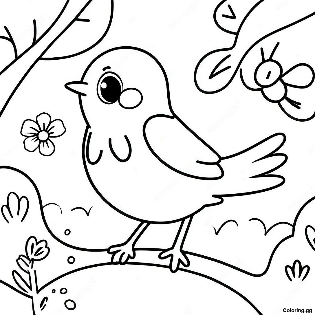 Hlaða niður prentvænu PDF af Hamingjusamur Robin Á Vorin Litabók