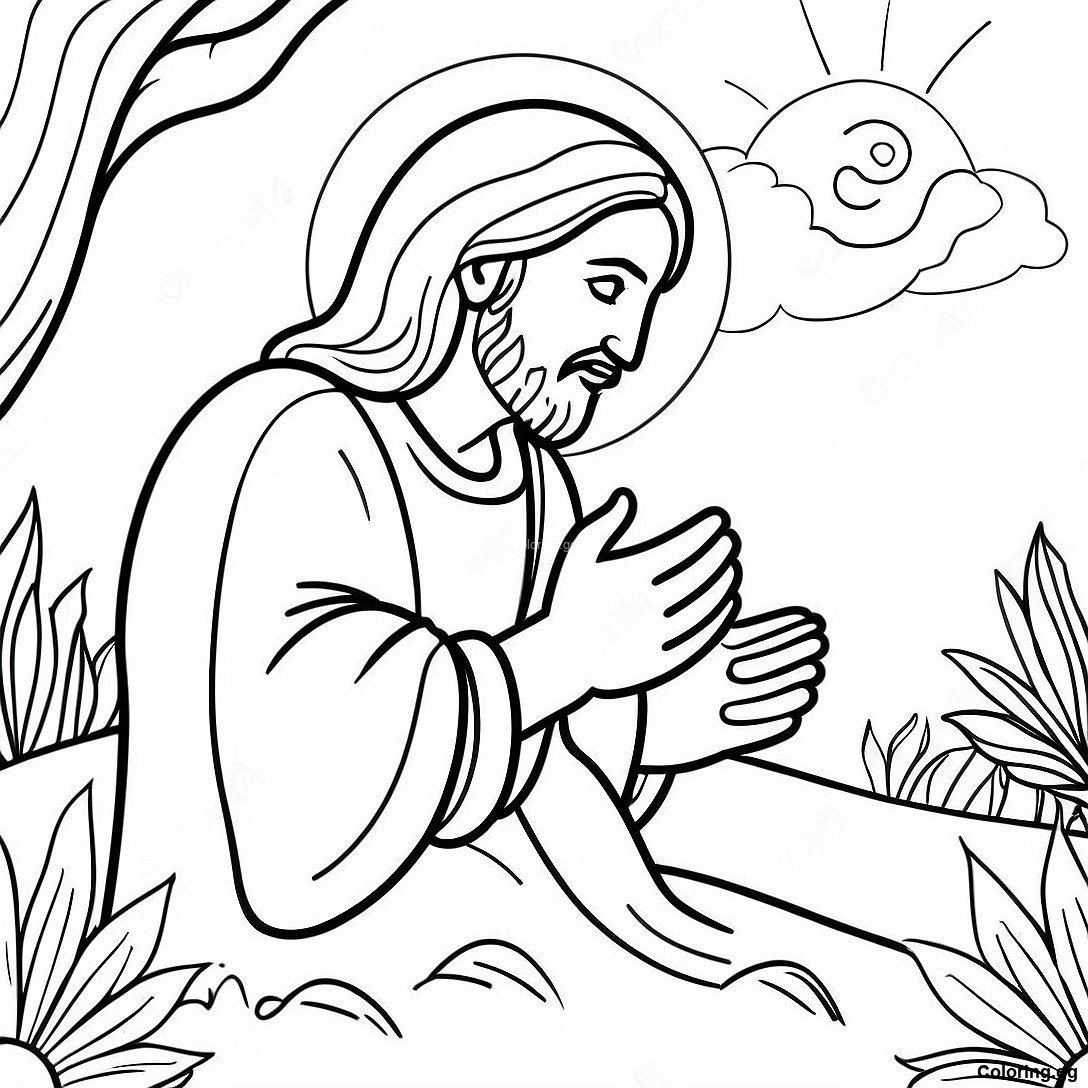 Hlaða niður prentvænu PDF af Jesús Að Biðja Í Garðinum Litabók