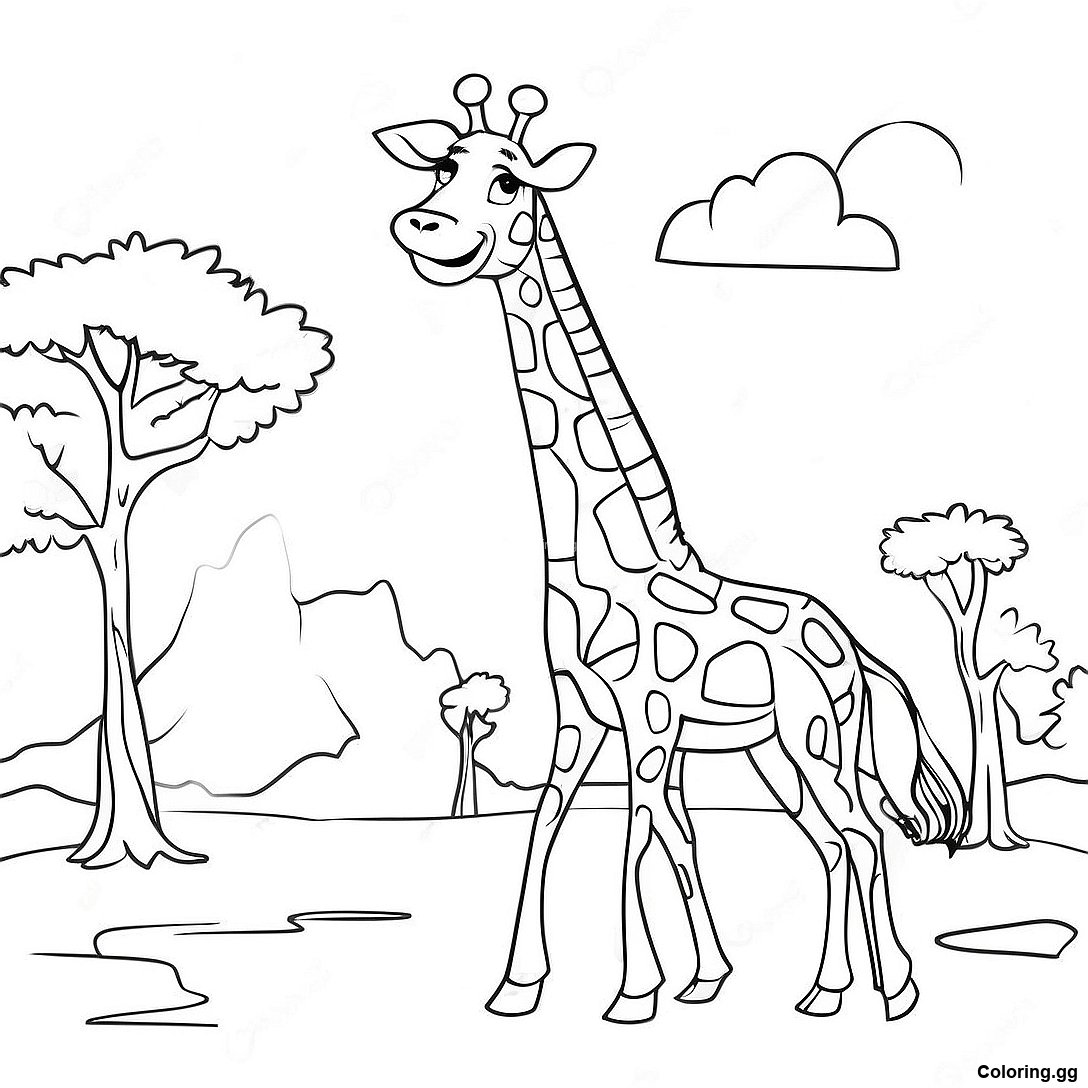 Hlaða niður prentvænu PDF af Leikandi Afrískur Gíraffi Litabók
