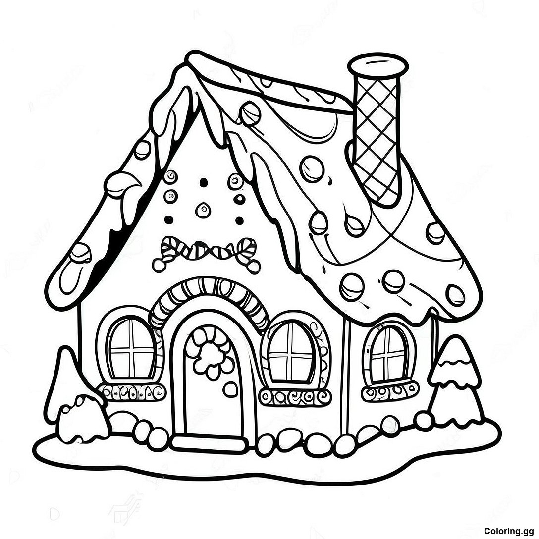 Hlaða niður prentvænu PDF af Lita Bók Hátíðlegt Pepparkökuhús Teikningasíða