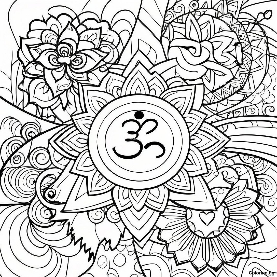 Hlaða niður prentvænu PDF af Litríkar Chakra Tákn Litunarsíða
