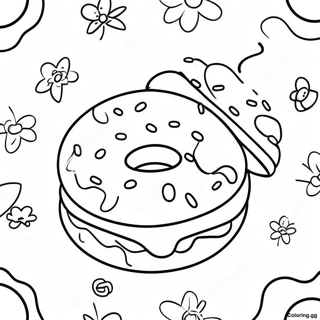 Hlaða niður prentvænu PDF af Litríkur Donut Með Stráum Litabók