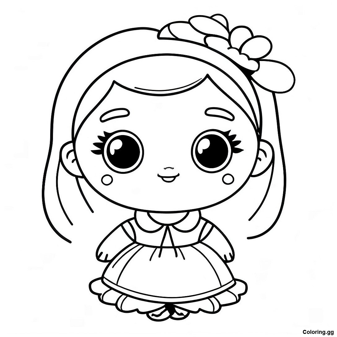 Hlaða niður prentvænu PDF af Sæt Dúkka Með Stórum Augum Lita Bók