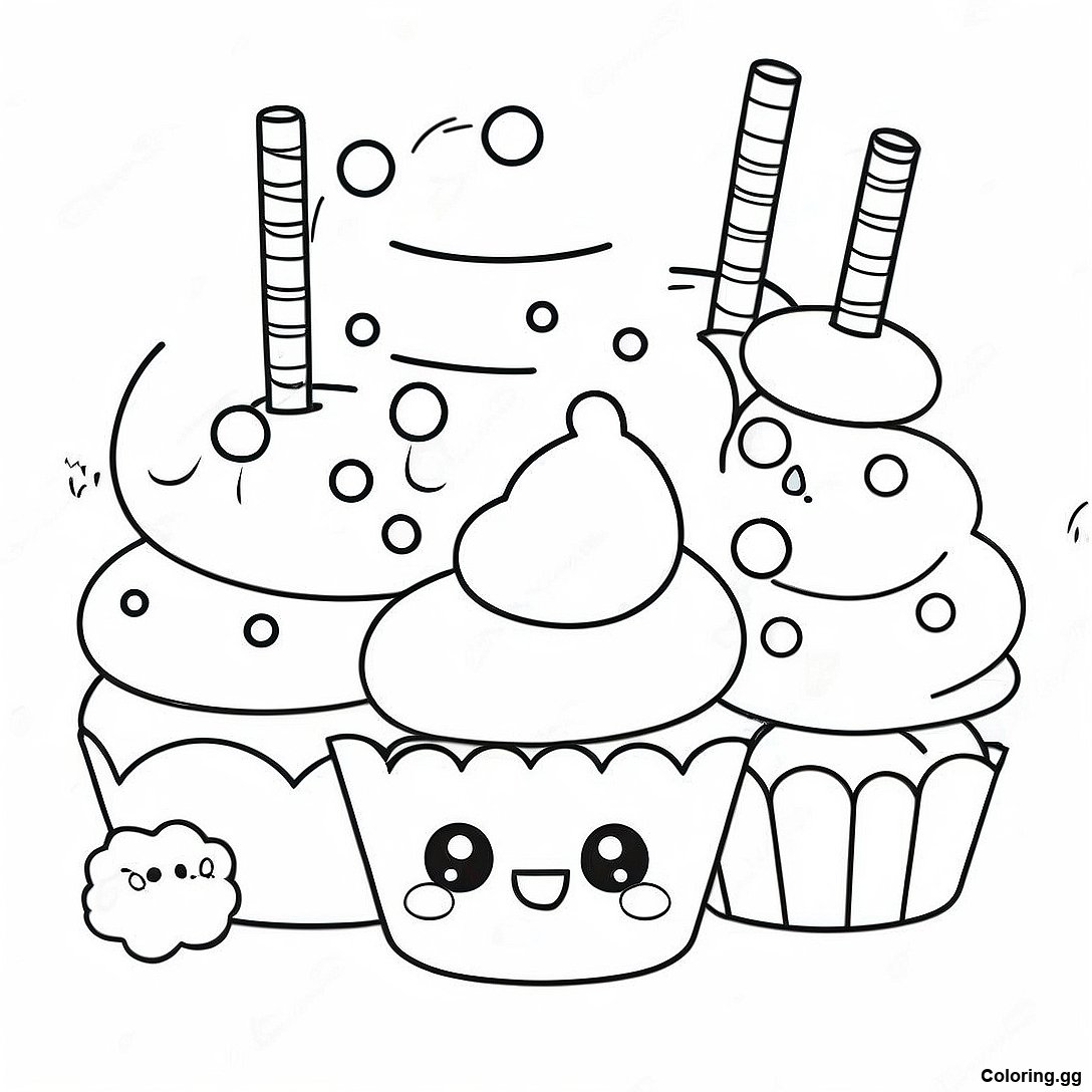 Hlaða niður prentvænu PDF af Sæt Num Noms Með Kökum Litabók