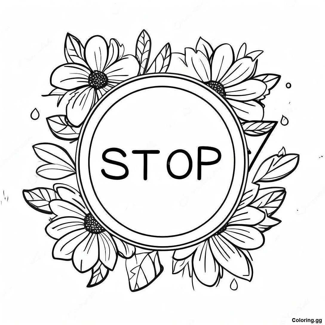Hlaða niður prentvænu PDF af Stoppskylda Umkringd Blómum Litabók
