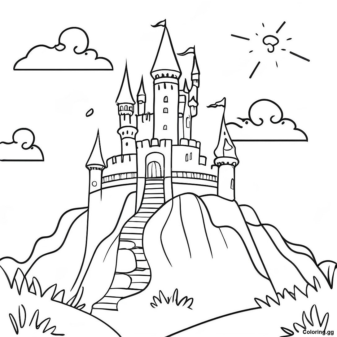 Hlaða niður prentvænu PDF af Töfrandi Kastalinn Á Hæð Litabók